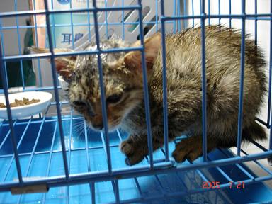 给他先放到笼子里,以免跟我家另外八只宝贝接触.然后给他喂了点猫粮,知道他是流浪