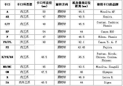 比如:C/Y卡口和F卡口的像场定位距离分别为45.5mm和46.5mm,而EF卡口为42mm,这